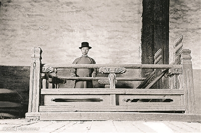 城楼内部照片极少见,图为1930年代一名年轻人站在安定门城楼内的二层楼梯口。