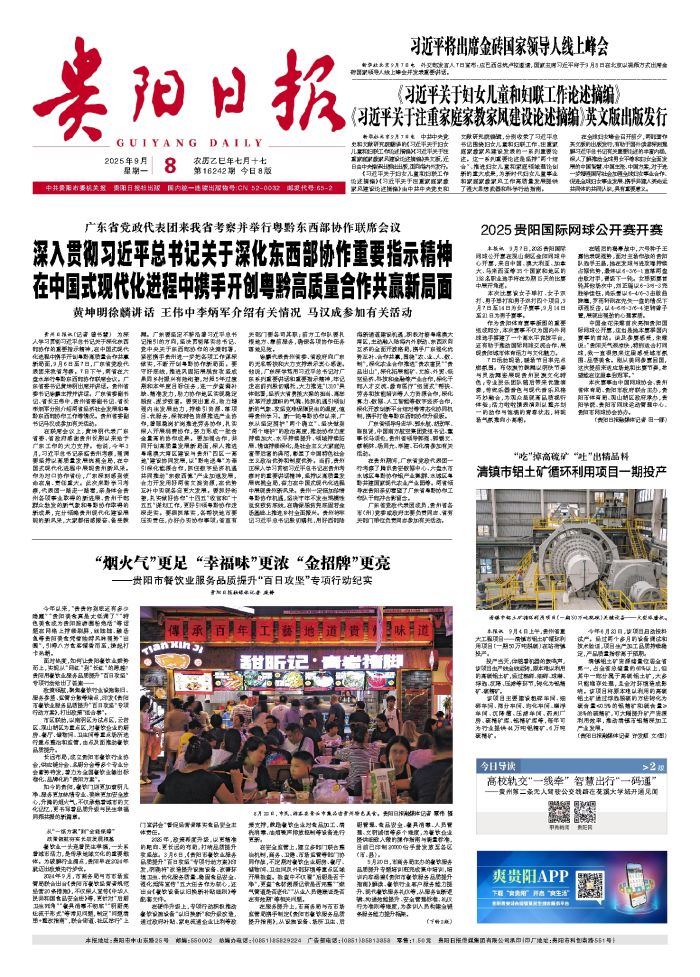贵州日报讯(记者 曾书慧) 为深入学习贯彻习近平总书记关于深化东西部协作的重要指示精神,在中国式现代化进程中携手开创粤黔高质量合作共赢新局面,9月6日至7日,广东省党政代表团来我省考察。7日