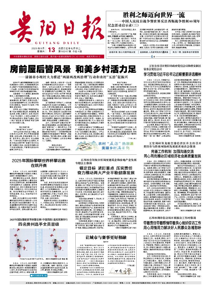 本报讯 9月12日,2025年国际攀联世界杯攀岩赛(中国贵阳)速度预赛在观山湖区贵州·彩湖国际攀岩中心举行,来自世界各地的68名选手经过激烈角逐,共有32人晋级决赛,其中,中国攀岩队展现出强