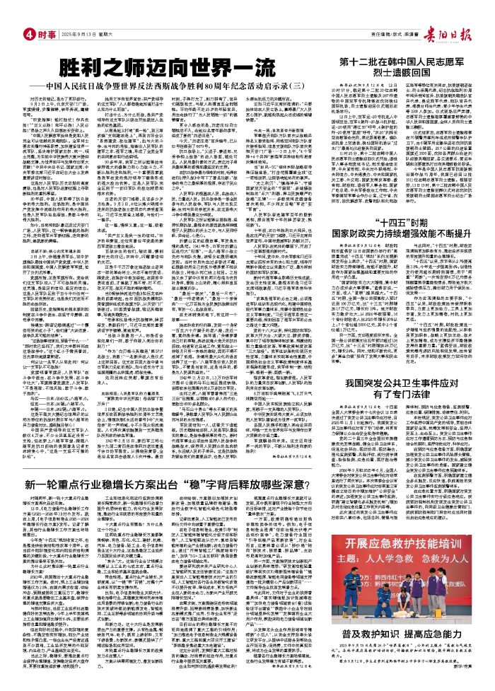 2025年9月13日是第26个“世界急救日” ,今年的主题为 “急救与气候变化”。各地开展应急救护培训活动,传播救护知识与理念,提升群众自救互救能力。 图为9月12日,学生在贵州省黔西市