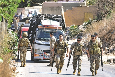 ▶9月13日在黎巴嫩南部城市西顿拍摄的艾因赫勒韦难民营。 ▼9月13日,在黎巴嫩北部城市的黎波里,黎巴嫩军队官兵在巴达维难民营向黎方移交武器现场执勤。 新华/传真