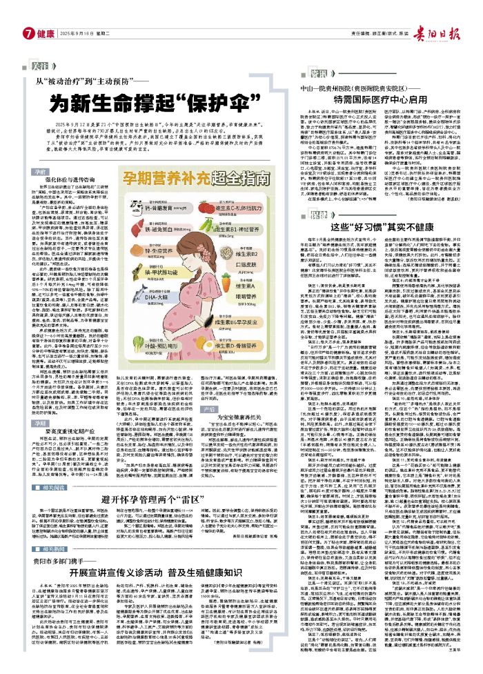 2025年9月12日是第21个“中国预防出生缺陷日”,今年的主题是“关注孕期营养,孕育健康未来”。据统计,全世界每年有约790万婴儿出生时有严重的出生缺陷,占总出生人口的6%左右。 贵阳