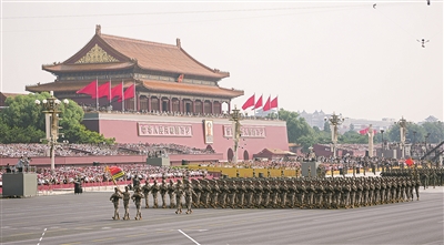 长安街上,雄师列阵、铁流滚滚,受阅官兵齐声高呼“正义必胜!和平必胜!人民必胜!”;直升机悬挂“正义必胜”“和平必胜”“人民必胜”条幅飞过天安门广场;8万羽和平鸽振翅翱翔……铭记历史、缅怀先烈的时刻,也是珍爱和平、开创未来的时刻。