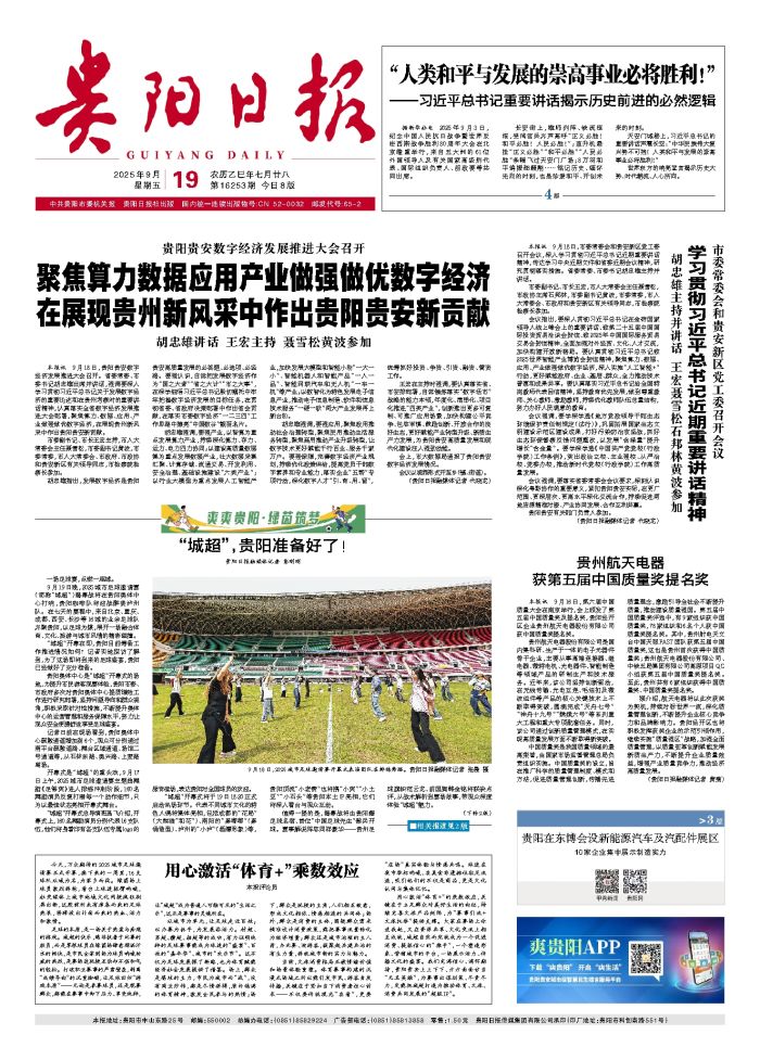 本报讯 9月18日,贵阳贵安数字经济发展推进大会召开。省委常委、市委书记胡忠雄出席并讲话,强调要深入学习贯彻习近平总书记关于发展数字经济的重要论述和在贵州考察时的重要讲话精神,认真落实全省数