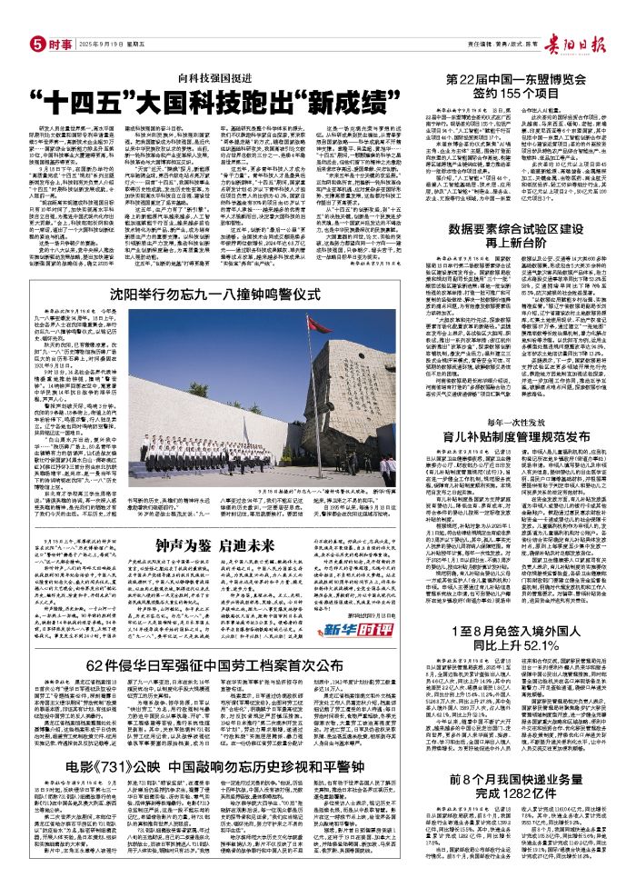 9月18日上午,浑厚深沉的钟声回荡在沈阳“九·一八”历史博物馆广场。这口“警世钟”静悬于广场之上,每到“九一八”这一天都会撞响。 聆听钟声,人们的耳畔又回响起在抗战胜利80周年纪念活动中