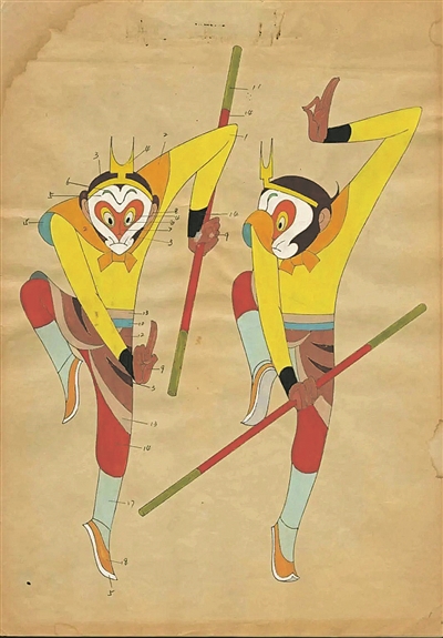 展品中,动画师陆青为孙悟空设计的动作草图,线条潇洒、动作飞扬,描绘了“辞别群猴”“演兵比武”“盗食金丹”等多个场景。当时,为了让孙悟空的动作更传神,动画师们专门跑去戏校看表演,从京剧中学动作、学节奏,再一帧一帧地画进角色里。所以片中的孙悟空,才会又灵活、又带戏味儿。