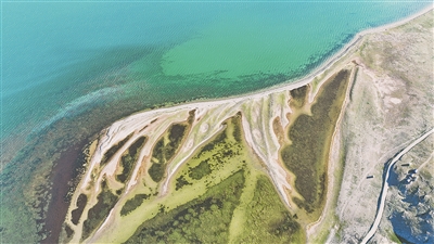 图③:2025年7月25日在青海省果洛藏族自治州玛多县扎陵湖畔拍摄的“尕日塘秦刻石”所在地(无人机照片)。