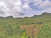9月19日清晨,在清镇市王庄布依族苗族乡蚂蟥村,玉米地上,一袋袋金黄的玉米“整装待发”,正等待该市黔耘农机专业合作社的无人机前来吊运——只需一分钟左右,无人机就能载着玉米飞越百米到达卸货点。