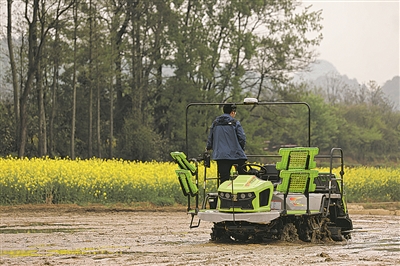 无人驾驶乘坐式插秧机在清镇市投入使用。