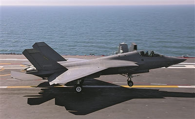 歼-35舰载战斗机在福建舰上开展触舰复飞训练(资料照片)。 新华/传真