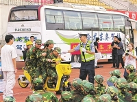 本报讯 日前,贵安新区公安局交警支队二大队走进贵州轻工职业大学和贵州电子科技职业学院,为正在军训的大一新生送去“交通安全第一课”。 活动现场,民警展示了辖区道路交通事故中的车辆,送上精
