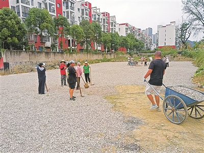 天诚花园小区居民主动参与小区文化广场建设。 山花社区/供图