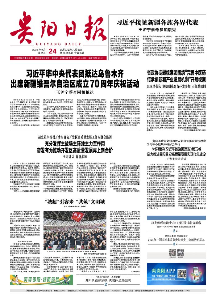 本报讯 9月23日,省政协专题视察团围绕“完善中医药传承创新和产业发展机制”到贵阳市开展视察。省政协主席赵永清带队,省政协副主席赵德明、张光奇、孙发参加。市政协主席石邦林陪同。 省政协