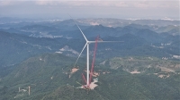 本报讯 9月21日,在修文县阳明洞街道和龙场街道交界处,修文高仓风电项目顺利完成首台风机吊装工作。当天,G08号机位风电机组最后一片叶片平稳升空,与轮毂精准对接,标志着该项目由基建阶段正式转