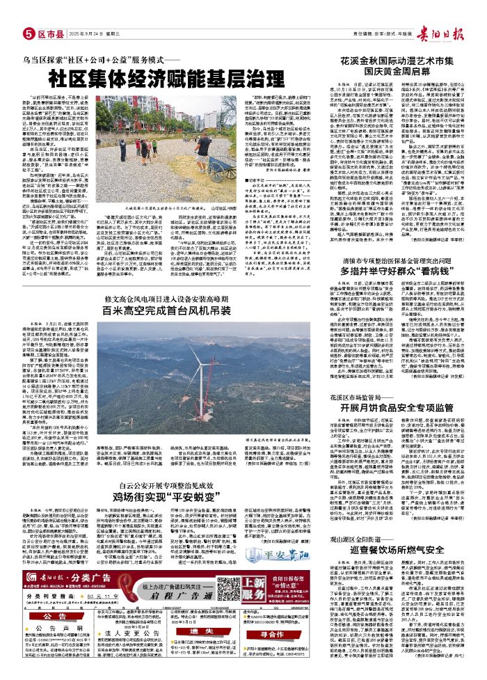 本报讯 今年,贵阳市公安局白云分局聚焦群众反映强烈的治安问题,以治安情况复杂的鸡场街区域治理为重点,综合运用“打、防、管、控、治”手段开展专项整治,群众安全感和满意度大幅提升。 针对鸡