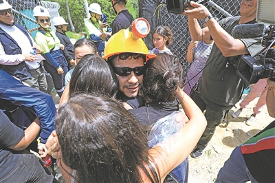 9月24日,在哥伦比亚塞哥维亚市,获救矿工拥抱家人。