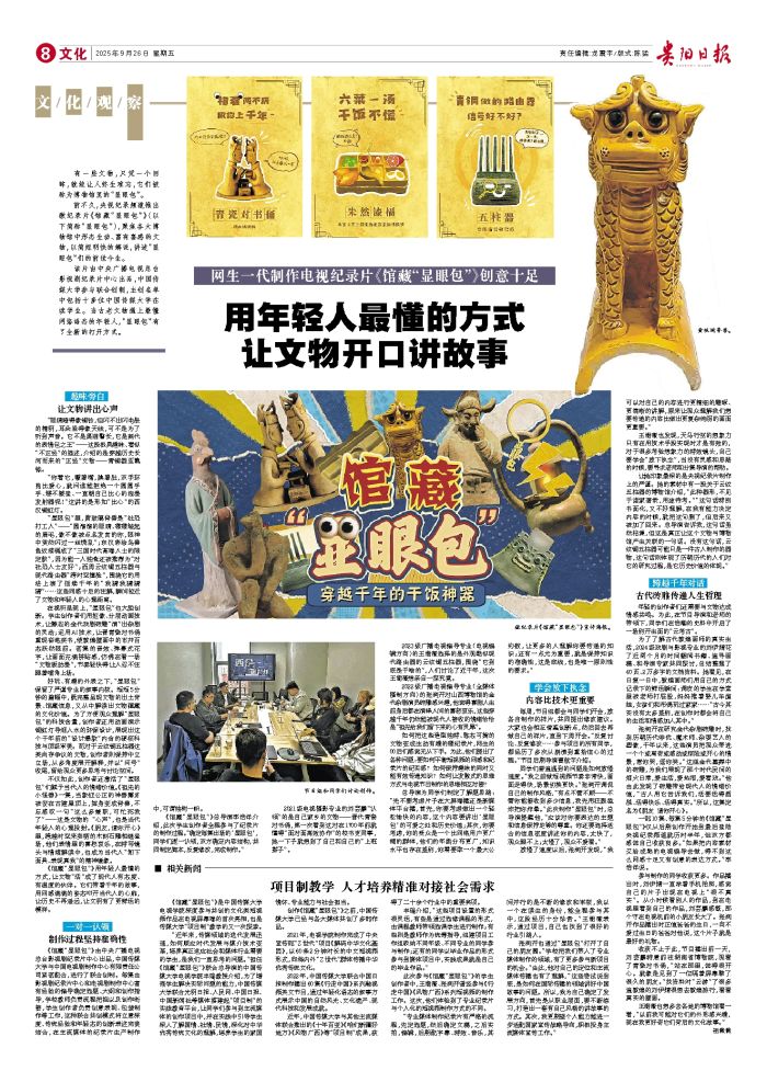 《馆藏“显眼包”》是中国传媒大学电视学院深度参与共创的文化类短视频作品在电视屏幕端的首次亮相,也是传媒大学“项目制”教学的又一次探索。 “近年来,传媒领域的迭代发展迅速,如何顺应时代发展