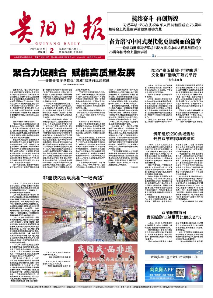 本报讯 10月1日,2025“贵阳精酿·世界味道”文化推广活动开幕式在观山湖区阿云朵仓举行。市委副书记、市长王宏宣布开幕。 副市长龙丛致辞,市政府秘书长李昂参加。 近年来,贵阳深