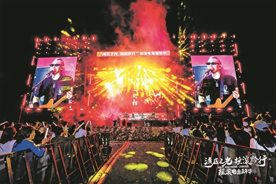 本报讯 10月2日晚,为期两天的“湾区之光·摇滚黔行”摇滚电音嘉年华在多彩贵州城启幕,天堂乐队以及音乐人张楚等现场为观众带来一场视听盛宴。