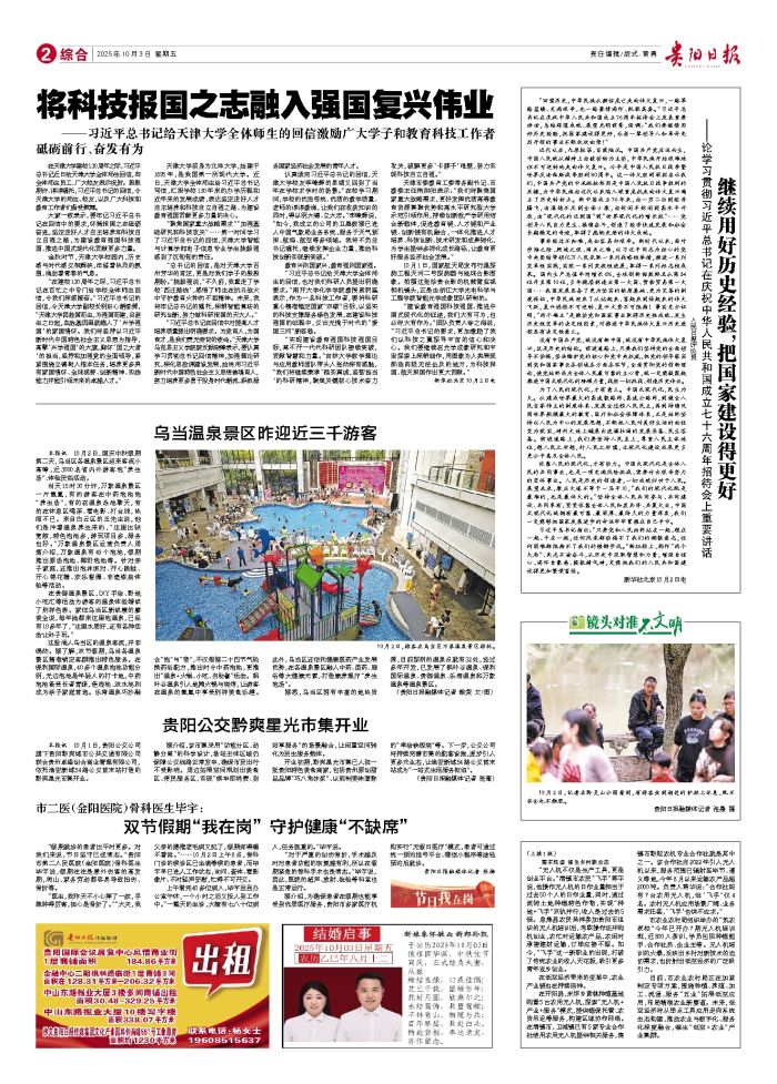 “假期就诊的患者比平时更多。对我们来说,节日坚守已成常态。”贵阳市第二人民医院(金阳医院)骨科医生毕宇说,假期往往是意外伤害的高发期,爬山、家务劳动都容易导致扭伤、骨折等。 “医生,我昨
