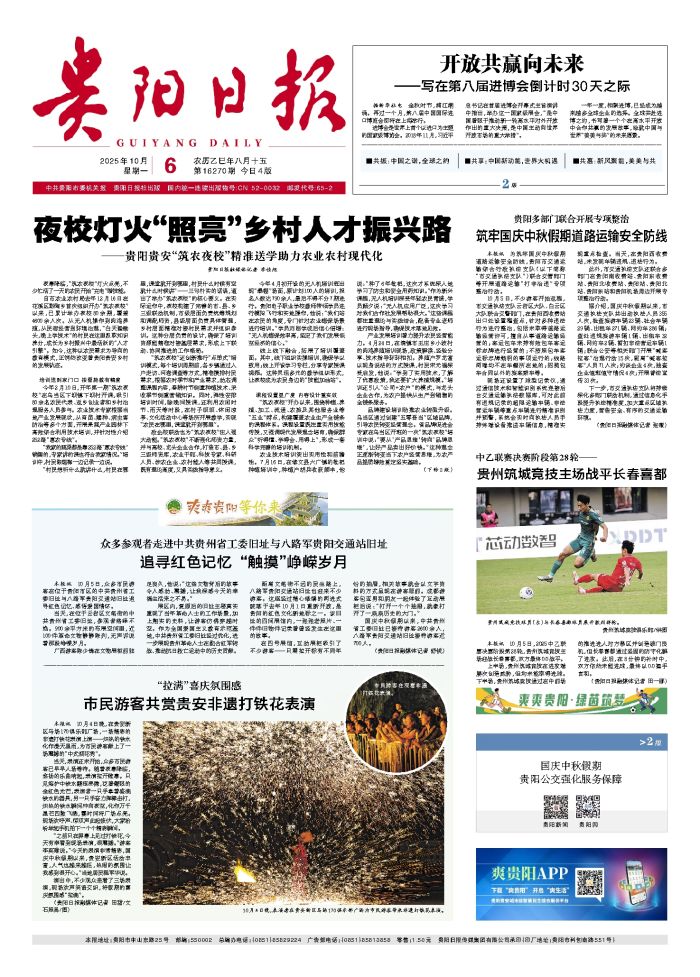 本报讯 10月5日,众多市民游客在位于贵阳市区的中共贵州省工委旧址与八路军贵阳交通站旧址追寻红色记忆、感悟爱国情怀。