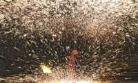 本报讯 10月4日晚,在贵安新区马场170俱乐部广场,一场精彩的非遗打铁花表演上演——炽热的铁水化作漫天星雨,为市民游客献上了一场震撼的“中式烟花秀”。 当天,表演还未开始,众多市民游