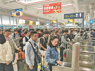 本报讯 10月7日,返程探亲流、返家旅游流和返校学生流等多股客流汇聚叠加,贵阳铁路进入2025年国庆中秋长假返程高峰时段。铁路部门增加运力投放,落实便民利民措施,保障广大旅客安全顺利返程。