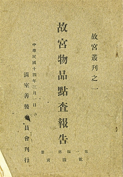 到1925年10月,故宫博物院成立时,点查登记造册的文物已有一半,后来点查工作多次停顿。到1929年3月秘书处成立,未点查的剩下宫内皇极殿、颐和轩一部分,以及宫外大高玄殿、实录大库等处。于是秘书处商量各馆处人员,全体加入点查工作,每日分两组或者四组进行。