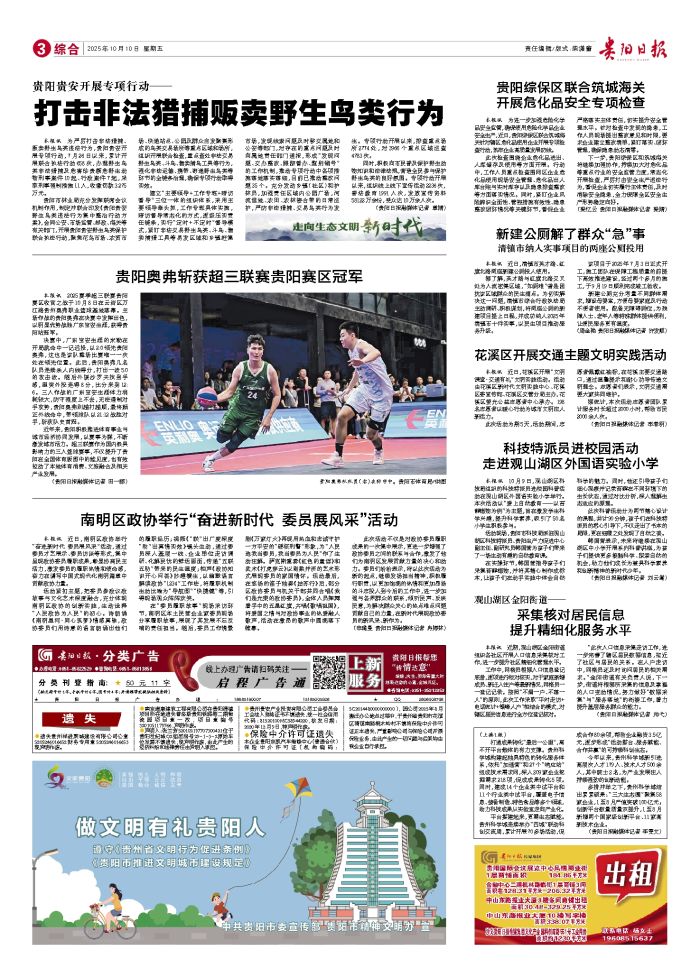 本报讯 2025赛季超三联赛贵阳赛区收官之战于10月8日在云岩区万江路贵州奥弗职业篮球基地落幕。主场作战的贵阳奥弗在决赛中发挥出色,以明显优势战胜广东宝安生涯,获得贵阳站冠军。 决赛中