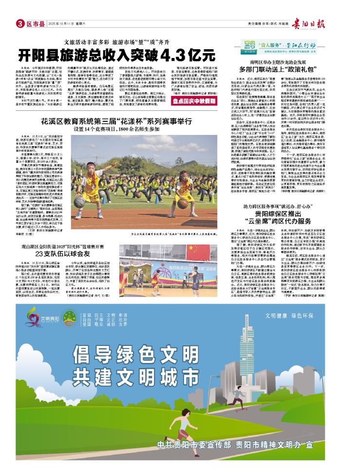 本报讯 今年国庆中秋假期,开阳县围绕“硒游开阳·月满华诞”主题,依托生态资源与文化底蕴,以“文化+旅游+体育+农业”深度融合为主线,推出多元旅游产品,实现旅游市场“量”“质”双升。全县累计接