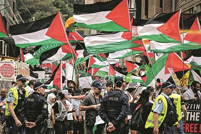 10月12日,在澳大利亚悉尼,民众举行集会声援巴勒斯坦人民。