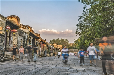 近年来,塱头村坚持“微更新”改造,通过政府、企业、村集体三方协作,将古民居改造为民宿或餐饮空间,新建的春阳台艺文中心集展馆、藏书楼、剧场于一体,成为村子的文化新地标。因村民不舍得拆旧建新,塱头村在古村旁修建新村,村民“住”在新村,“做”在古村,通过在古村的民宿、餐饮、文创店工作实现“家门口就业”。