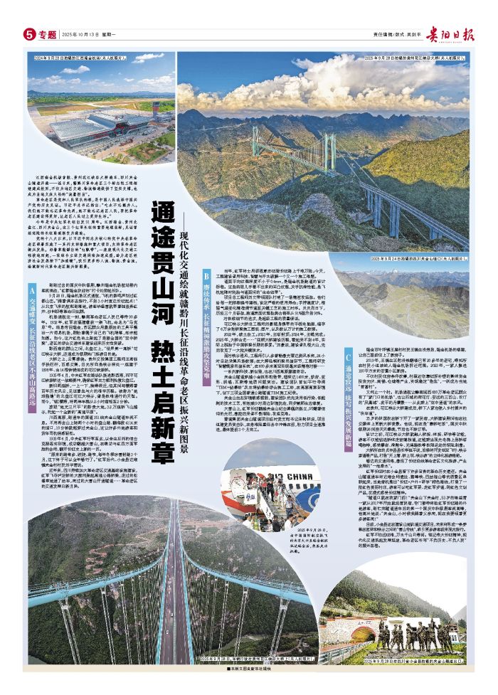 江西瑞金机场首航、贵州花江峡谷大桥通车、四川夹金山隧道开通——连日来,赣黔川革命老区三个标志性工程相继建成投用,不仅为地区交通、物流畅通提供了坚实支撑,也成为当地文旅火热的“流量担当”。