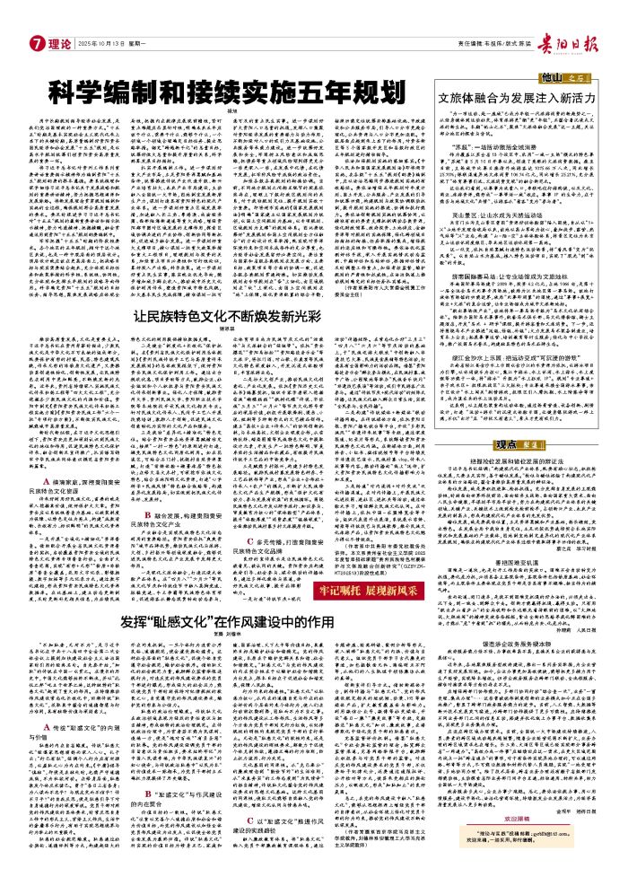 谢思琪 推动高质量发展,文化是重要支点。习近平总书记在贵州考察时指出,少数民族文化是中华文化不可或缺的组成部分,既要保护有形的村落、民居、特色建筑风貌,传承无形的非物质文化遗产,又要推动