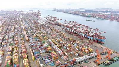 图为10月13日在山东港口青岛港拍摄的外贸集装箱码头(无人机照片)。