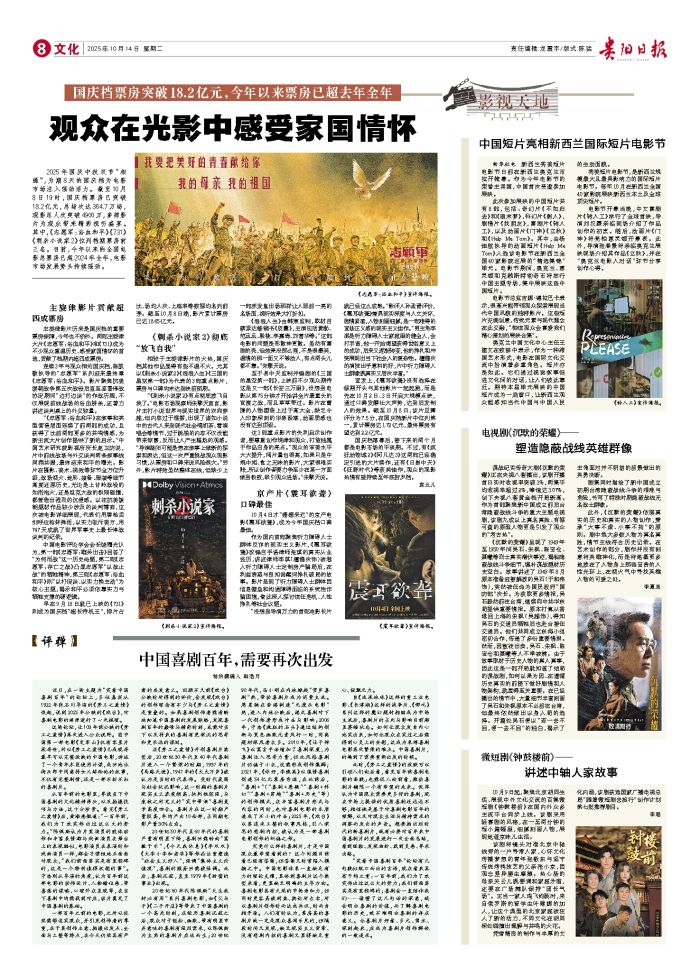 2025年国庆中秋双节“相遇”,为期8天的国庆档为电影市场注入强劲活力。截至10月8日19时,国庆档票房已突破18.2亿元,总场次达364.7万场,观影总人次突破4900万,多部影片为观众带来