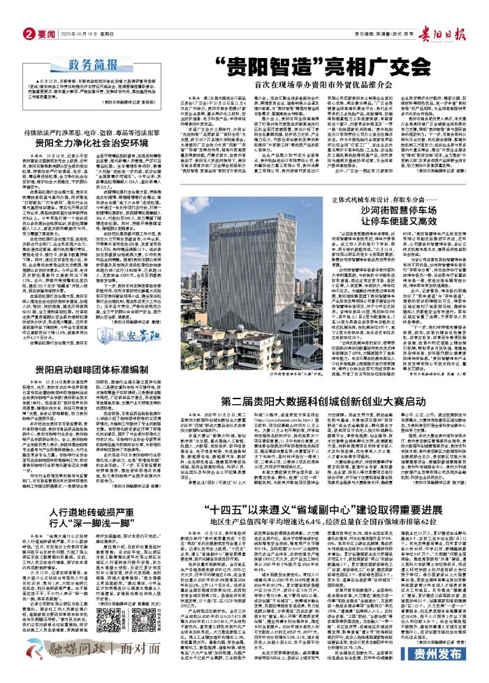 本报讯 2025年10月15日,第二届贵阳大数据科创城创新创业大赛暨2025年“四城”联动大赛启动仪式在贵阳大数据科创城举行。 本届大赛以“数聚大科城,智创新未来”为主题,重点围绕人工