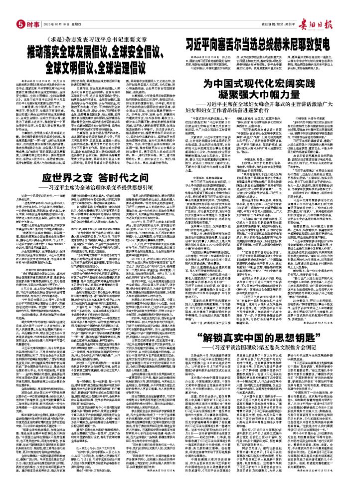 新华社北京10月15日电 10月16日出版的第20期《求是》杂志将发表中共中央总书记、国家主席、中央军委主席习近平的重要文章《推动落实全球发展倡议、全球安全倡议、全球文明倡议、全球治理倡议》