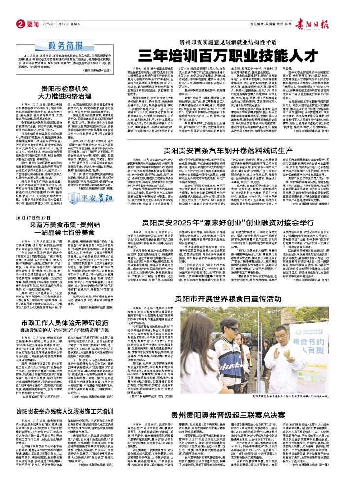 本报讯 10月16日是第45个世界粮食日,贵阳市粮食和物资储备局在贵阳市行政中心西南美食城广场开展2025年世界粮食日暨全国粮食安全宣传周宣传活动。 今年世界粮食日的活动主题为“手拉手
