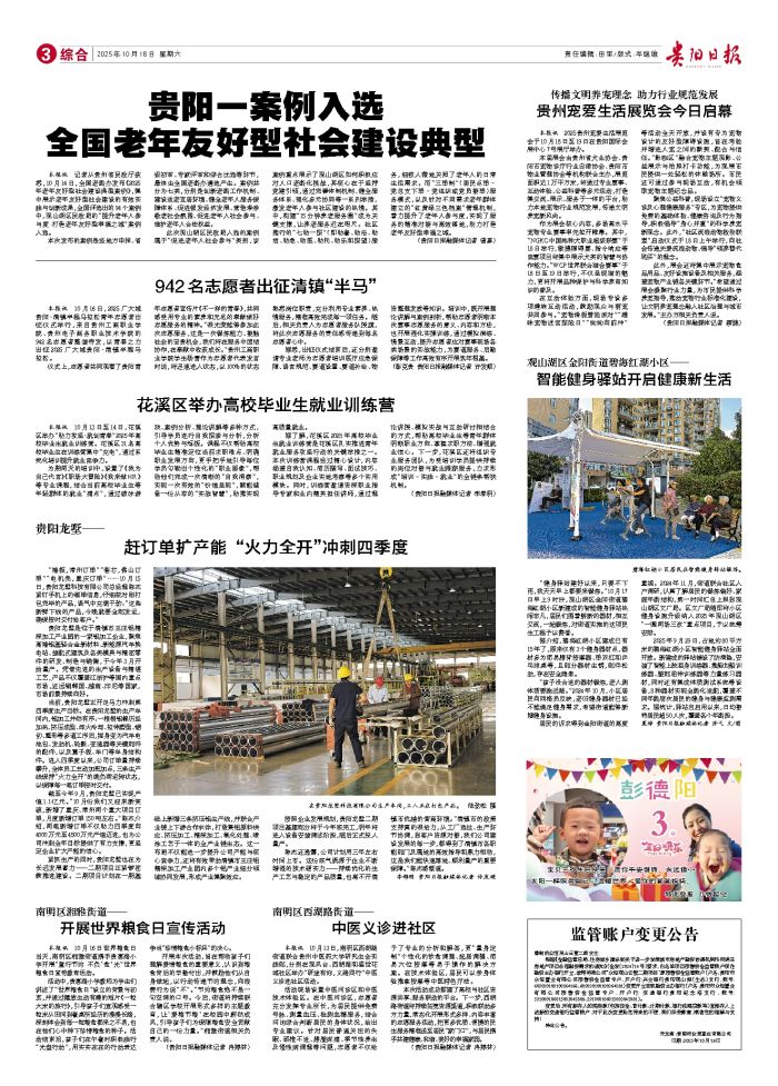 本报讯 记者从贵州省民政厅获悉,10月14日,全国老龄办发布《2025年老年友好型社会建设典型案例》,集中展示老年友好型社会建设的有效实践与创新成果,全国评选出的94个案例中,观山湖区民政局