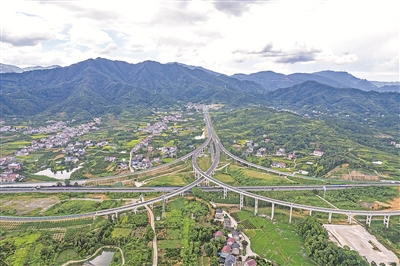 2025年8月19日拍摄的湖南炉慈高速慈利西互通枢纽(无人机照片)。