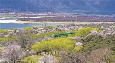 2025年4月2日,复兴号列车穿行在拉林铁路林芝段。