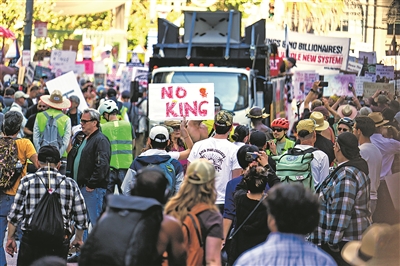 游行组织方说,美国数百万人当天在逾2700个城镇参加了和平示威游行,这是6月14日首次全美“不要国王”抗议活动的延续。