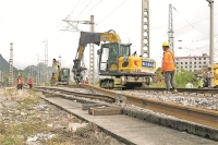 本报讯 10月15日上午8时,随着线路封锁施工的命令下达,贵阳南站下行到达场站场改造工程施工启动。施工现场机械轰鸣,贵阳工务段100余名工作人员有序作业,一派火热景象。 贵阳南站是全国