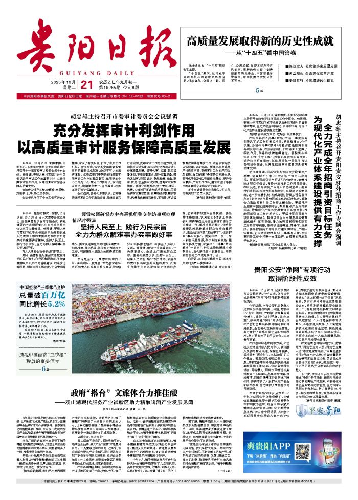 本报讯 10月20日,省委常委、市委书记胡忠雄主持召开贵阳贵安驻外招商工作专题会。他强调,要深入学习贯彻习近平总书记在贵州考察时的重要讲话精神,全力完成全年招商引资目标任务,为现代化产业体系
