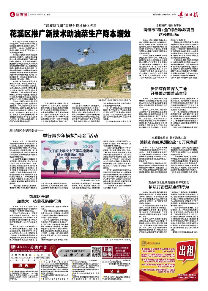 本报讯 10月17日,观山湖区金华园街道联合贵州省图书馆举办以“践行全过程人民民主·拓展建议提案广泛性”为主题的青少年模拟“两会”活动,300余名师生、代表委员齐聚一堂,通过沉浸式体验让民主