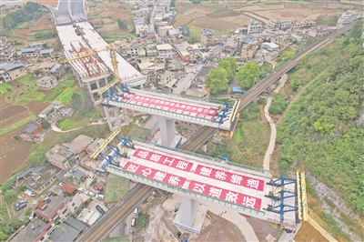 10月21日,沪昆国家高速公路贵阳至安顺段扩容项目(以下简称贵安扩容项目)关键控制性工程、全线唯一转体桥站街1号大桥完成105度顺时针水平转体并实现精准对接施工,标志着项目建设取得新突破。大桥全长524米,主桥采用“40米T梁+2×40米转体刚构”的结构设计,单幅转体重量约7100吨。