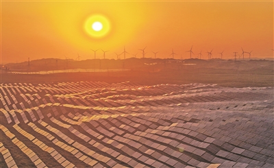 2025年8月19日拍摄的国家电网有限公司宁夏—湖南±800千伏特高压直流输电工程(“宁电入湘”工程)配套新能源项目(无人机照片)。