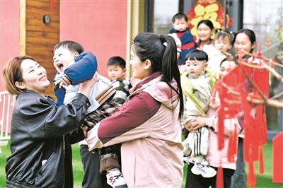 ▲2025年3月12日,家长在山东省菏泽市郓城县鹏瑞幼儿园接孩子回家。