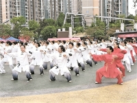 本报讯 观山湖区世纪城街道日前联合辖区多个社区,组织开展太极展演活动,以进一步深入推广全民健身理念,丰富辖区居民文化生活,传承和弘扬太极文化。 活动当日,老年参演者以拳为媒、以扇传情,